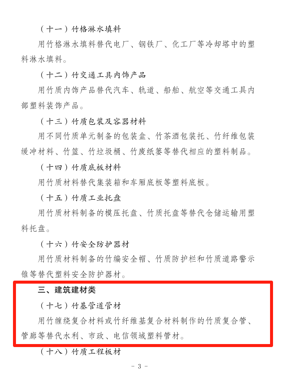 近日,国家林业和草原局、国家发展改革委发布《“以竹代塑”主要产品名录(2025年版)》,竹缠绕复合材料凭借其卓越的性能和广泛的应用前景,再次成功入选该名录,位列“工业生产类”“建筑建材类”首位,这标志着竹缠绕复合材料在推动绿色发展、减少塑料污染方面将发挥更为重要的作用。